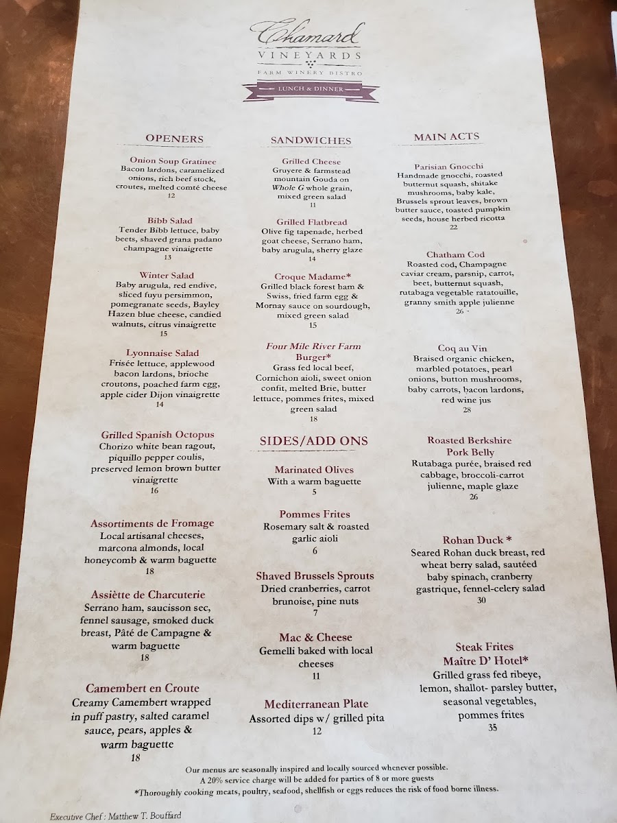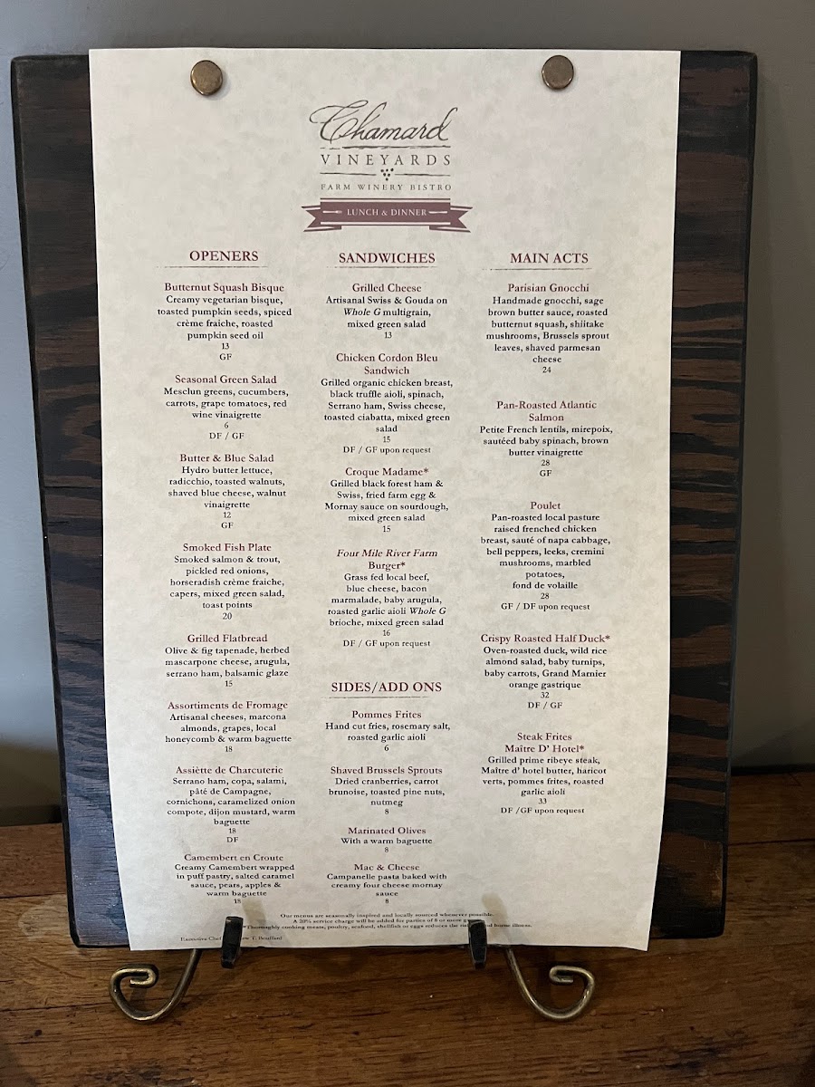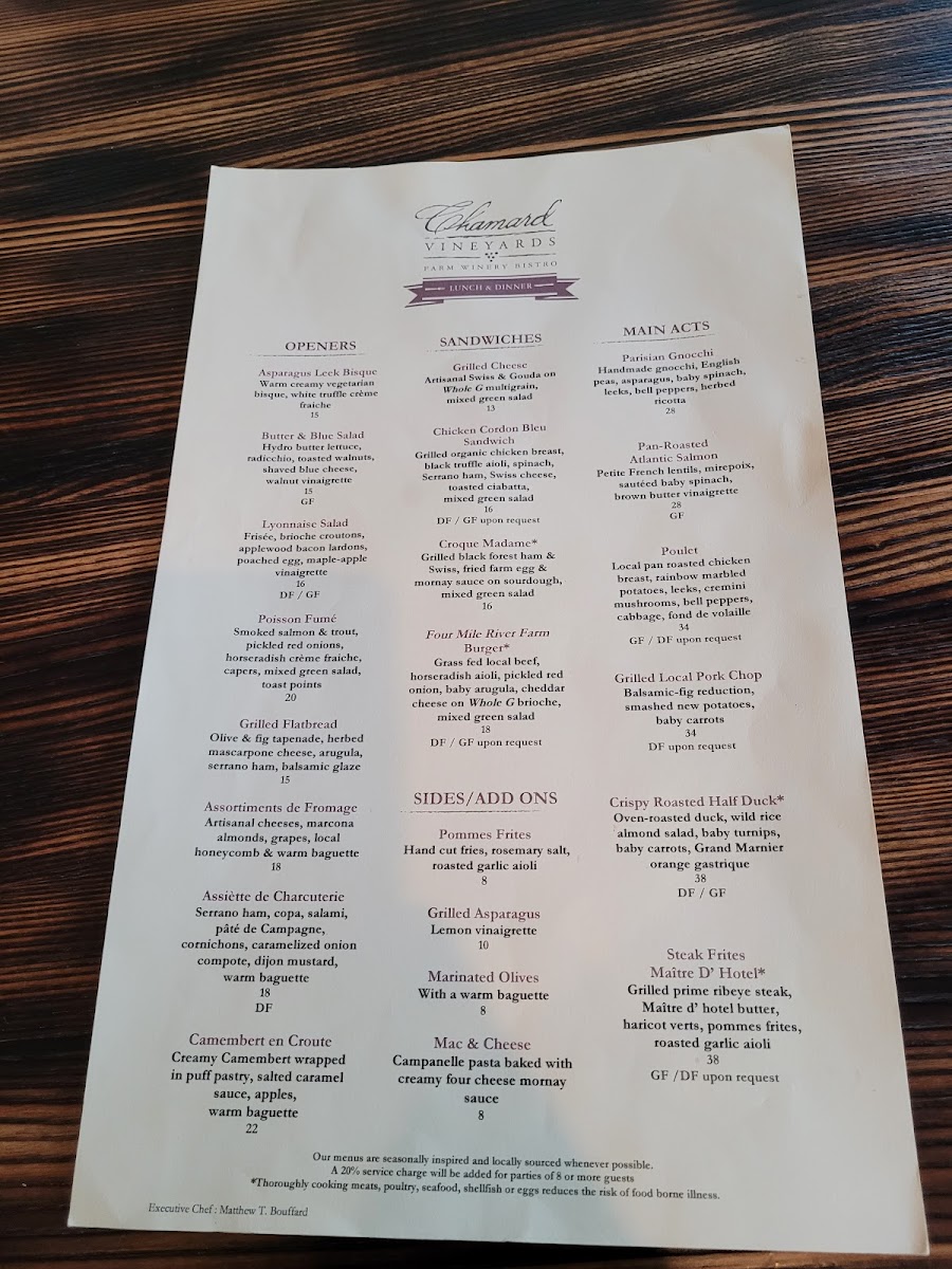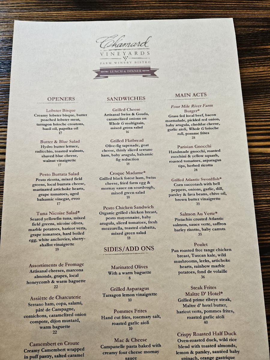 The charming ambiance and attentive service create an inviting space for a memorable dining experience, making Chamard Vineyards Bistro a must-visit for both locals and visitors alike.